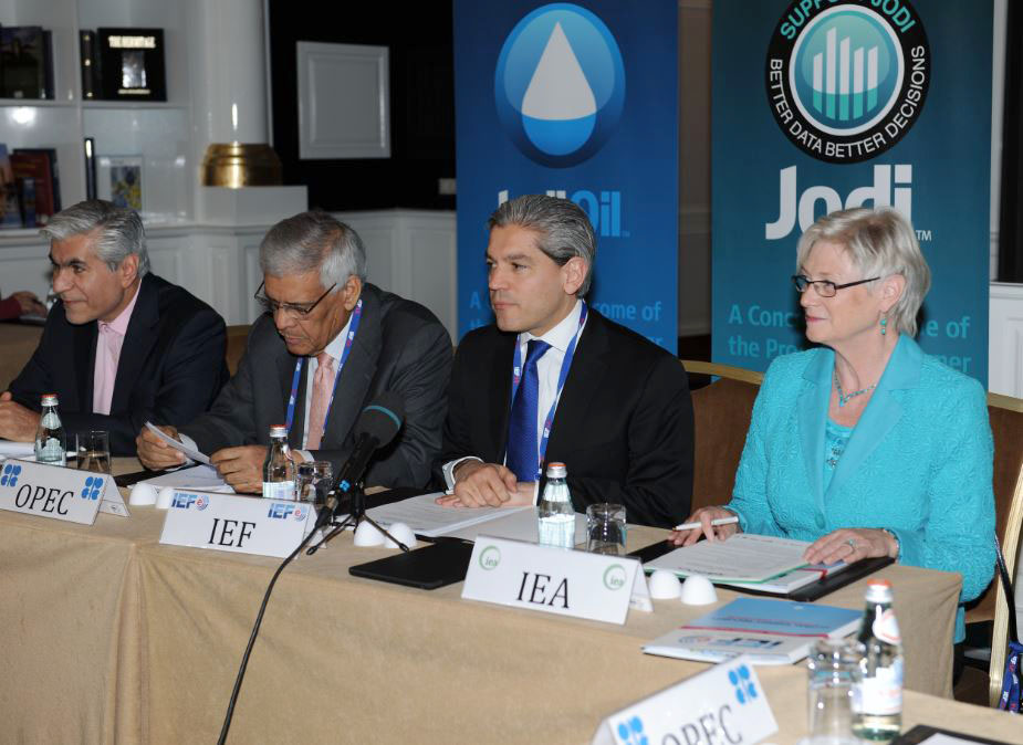A Meeting of Heads of the JODI Partner Organisations was held on 14 May ahead of the 14th International Energy Forum Ministerial meeting (IEF14). Representatives from seven JODI Partners were present, including HE Abdalla Salem El-Badri, Secretary General, OPEC; HE Maria van der Hoeven, Executive Director, IEA; HE Seyed Mohammad Hossein Adeli, Secretary General, GECF; and HE Aldo Flores-Quiroga, Secretary General, IEF.